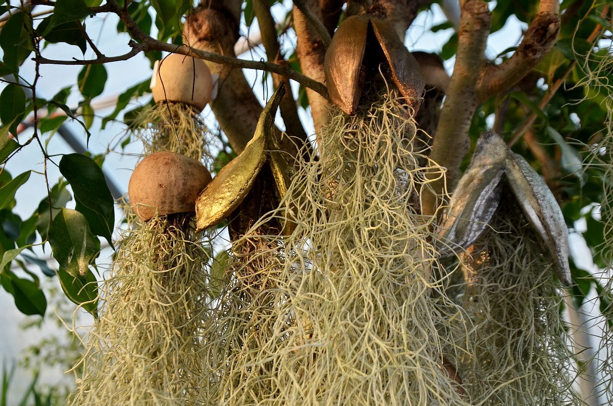 Тилландсию часто называют Луизианский мох. Ее прикрепляют корнями к опорам, имитирующим естественную среду обитания: кору, ветки, корни, коряги. Она очищает воздух от вредных веществ и добавляет интерьеру экзотики. Для комфортной жизни без почвы растение потребует яркого рассеянного света, регулярного опрыскивания, еженедельного 15-минутного «купания» в мягкой воде и хорошей вентиляции. Идеальны восточные или западные окна. Предпочитает температуру 22-28 градусов летом и 16-20 зимой.