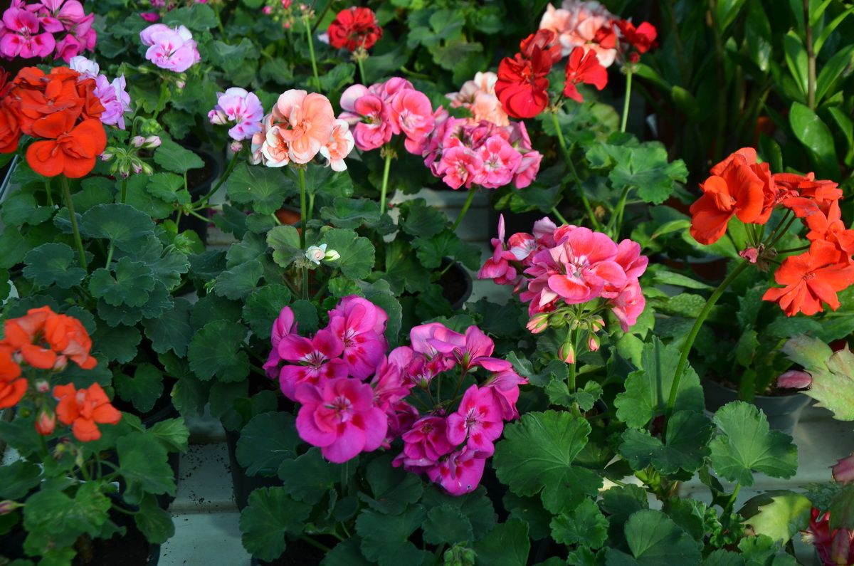 Садовый центр Сочи предлагает различные расцветки комнатного растения Пеларгония (Зональная). В переводе древнегреческого «pelagros» означает аист. Возможно, свое имя растение получило за удлиненные плоды, похожие на клюв аиста. В России этот тропический цветок родом из Южной Африки в народе часто называют геранью.